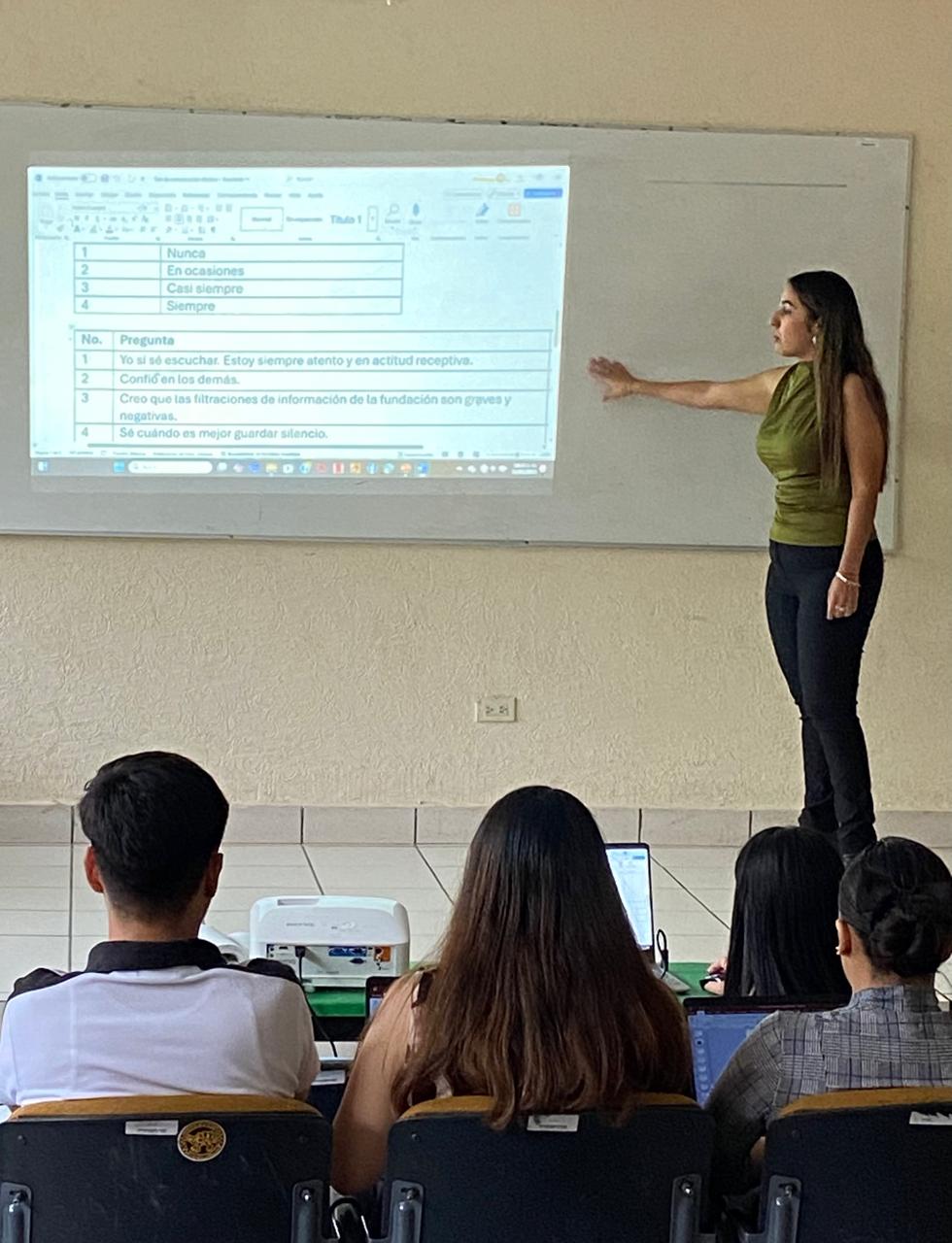 Durante su exposición estuvieron presentes los maestros Francisca Pedroza Montero, líder del grupo, la Dra. Silvia Leticia Sánchez Fuentes, así como el maestro Conrado Sanzarric Aguilar, quien al final realizo las conclusiones de lo expuesto por los alumnos.
